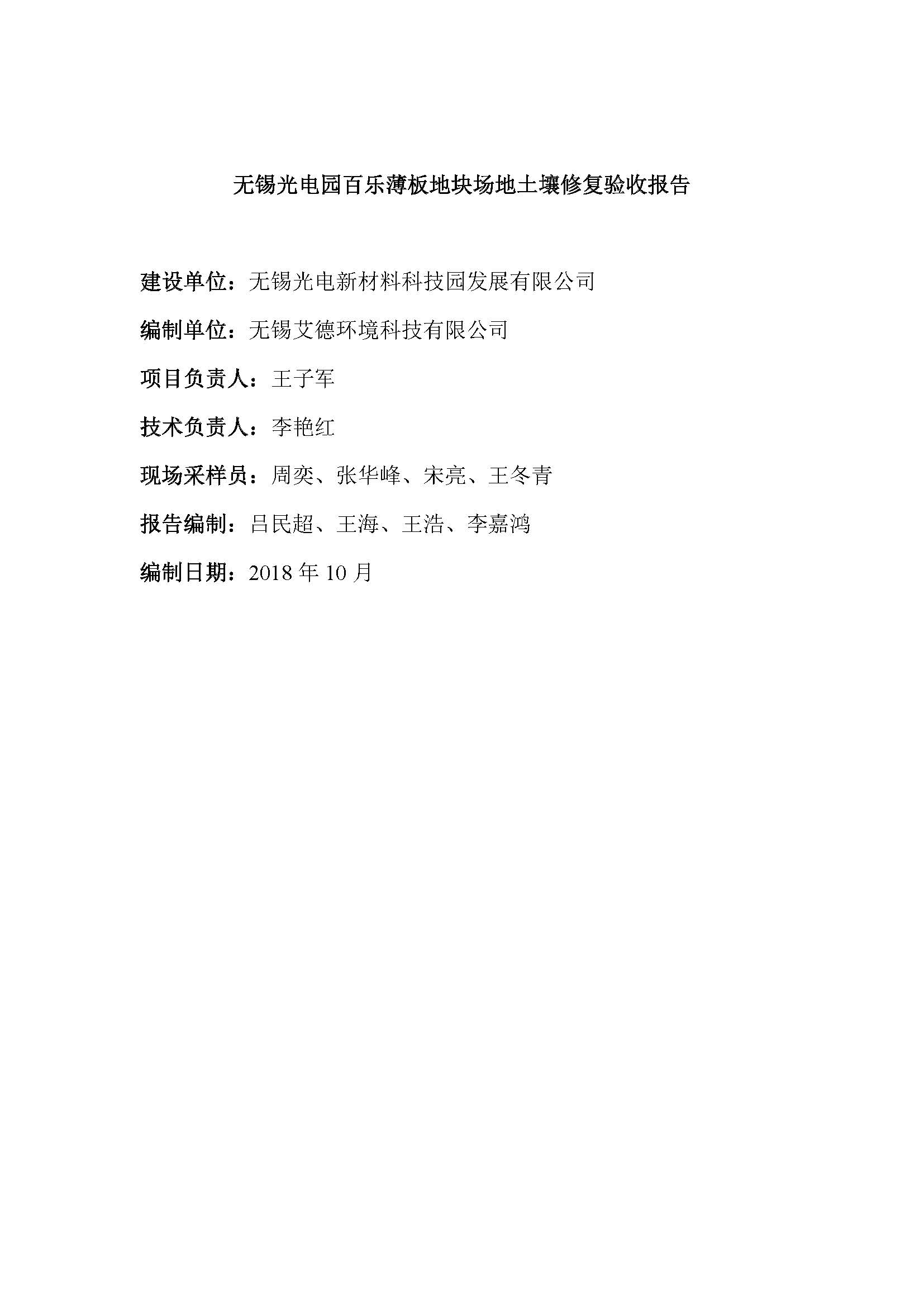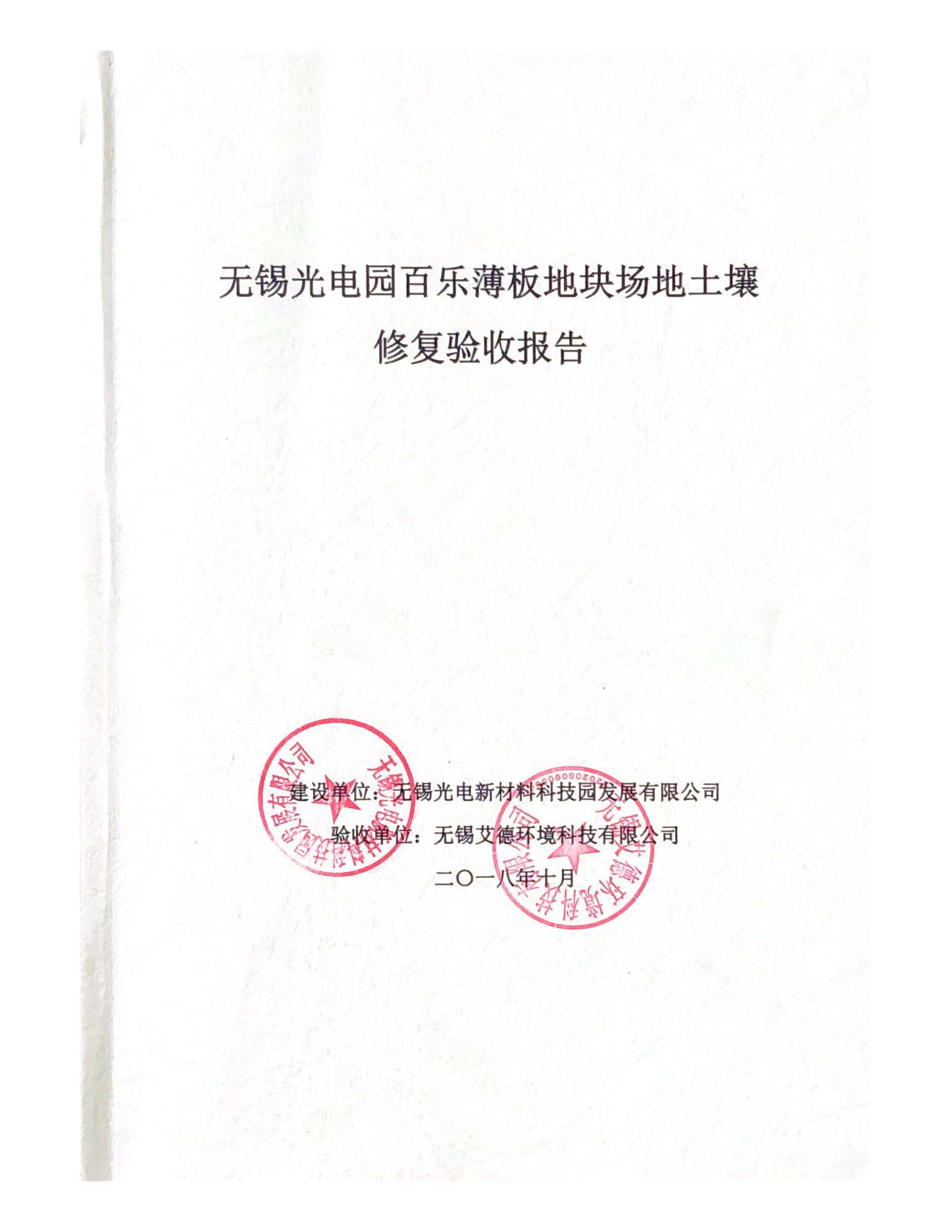 无锡光电园百乐薄板地块场地土壤修复验收报告公示
