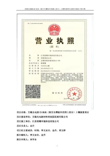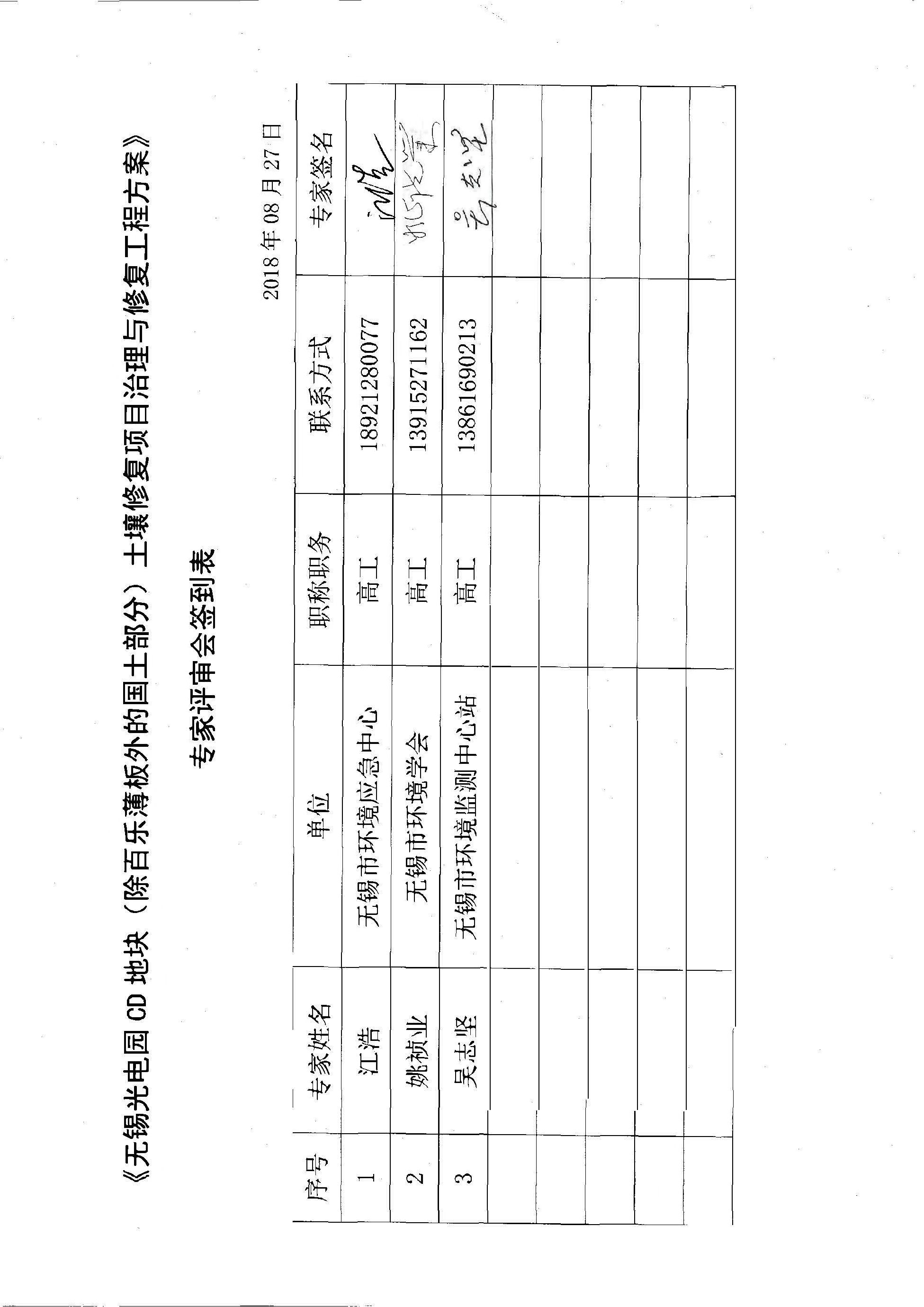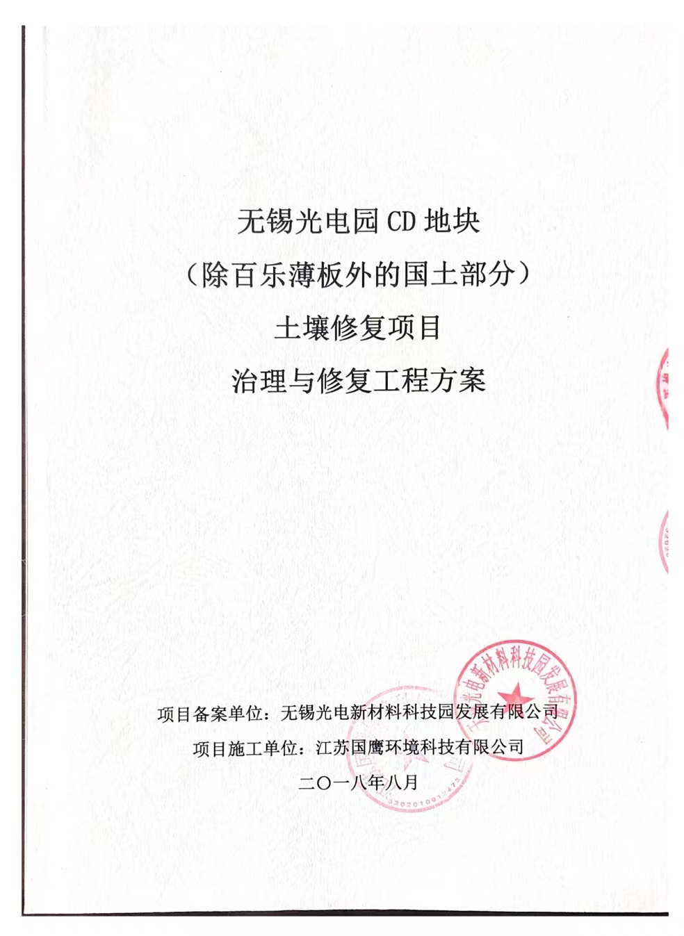 《无锡光电园CD 地块(除百乐薄板外的国土部分)土壤修复项目治理与修复方案及专家评审意见》
